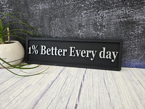 1% Better Every Day Sign, Wooden Motivational Decor